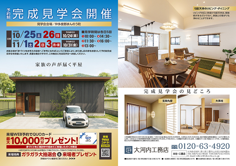 2025年10月25日(土)・26日(日)・11月1日(土)・2日(日)・3日(月・祝)予約制完成見学会を開催