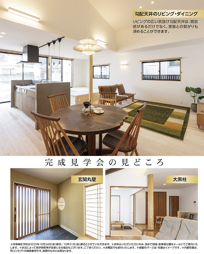 2025年10月25日(土)・26日(日)・11月1日(土)・2日(日)・3日(月・祝)予約制完成見学会を開催