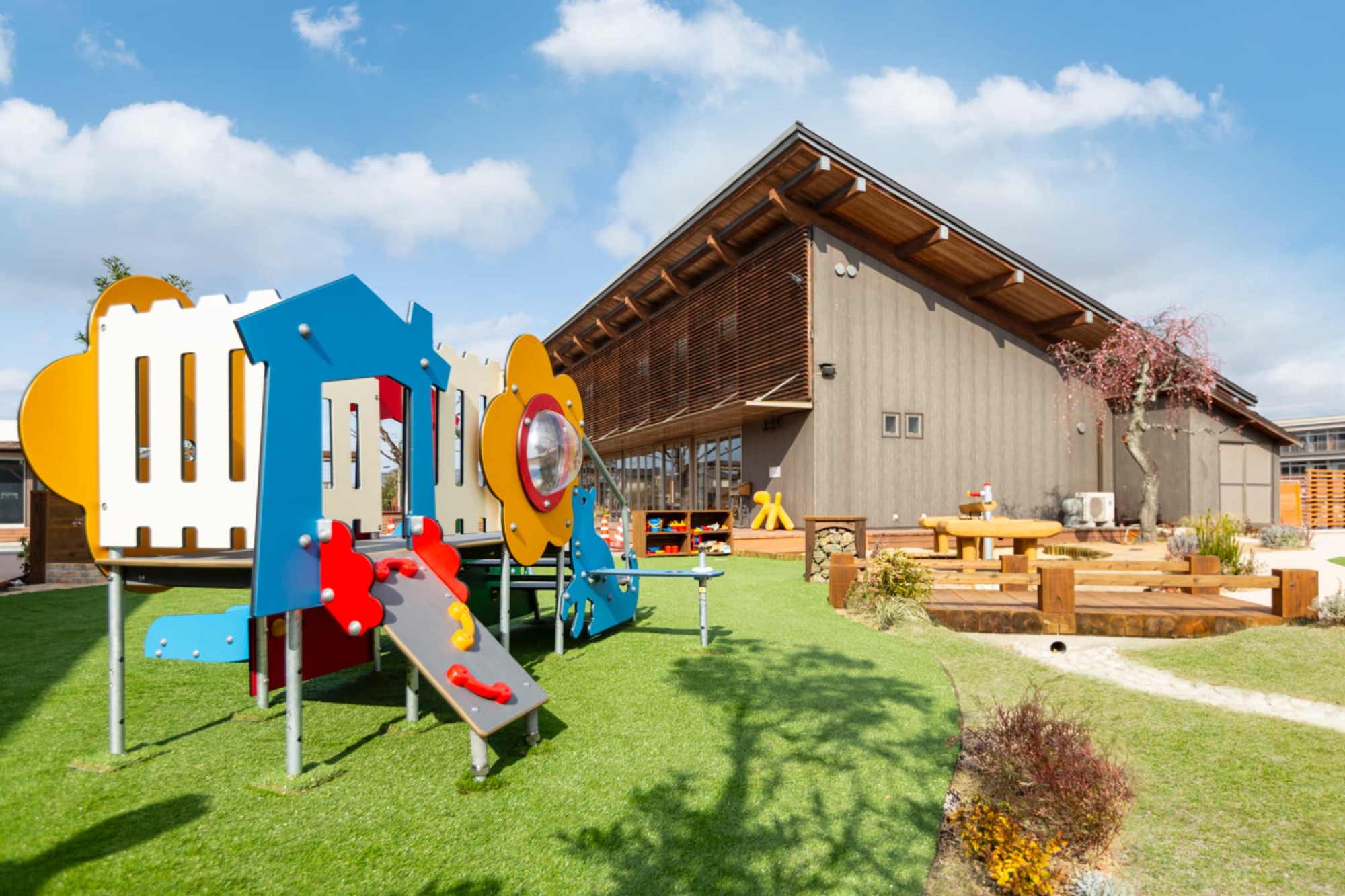 お庭のような心地よい空間には、夢中で遊べる世界中から厳選した遊具がいっぱいです。