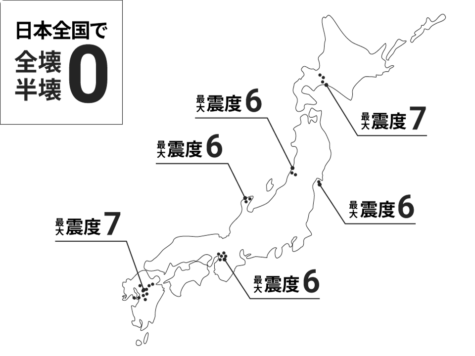 全壊・半壊ゼロの実績