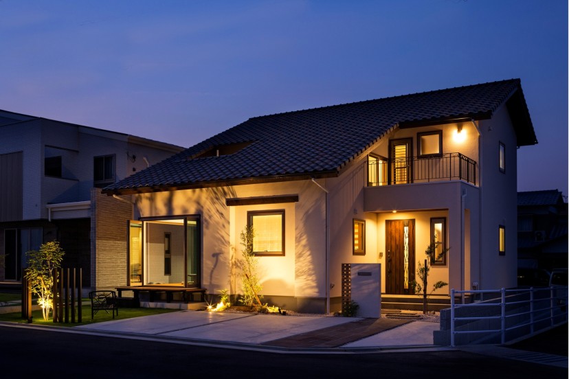 南欧風の瓦屋根が映える、やさしい表情の住まい。