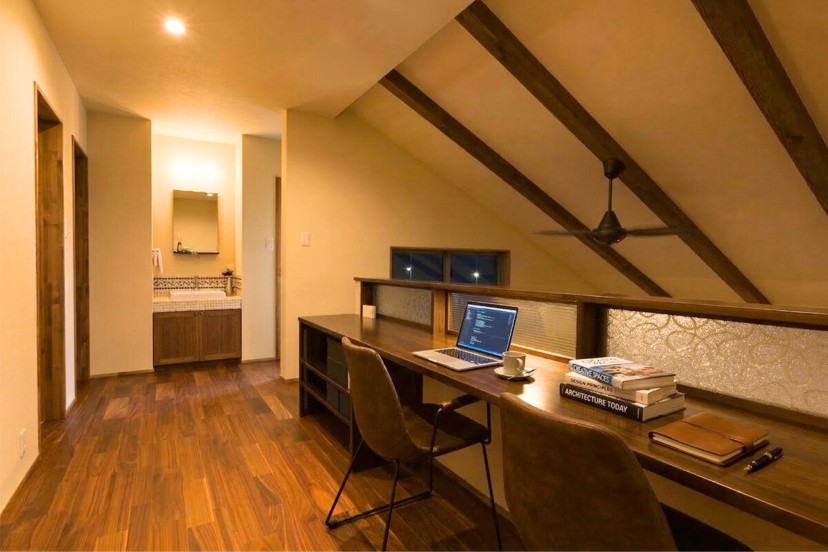 吹抜けに面した2階ホールに設けたスタディースペース。